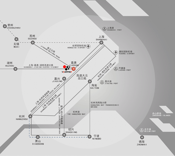 Visit Us Located in Jiashan, Zhejiang, China, Vodafast company enjoyed very convenient transportation, about an hour’s drive to Shanghai Hongqiao or Pudong airport, 30 minutes by high-speed train, airport pick-up and drop off services supplied, welcome to visit us!